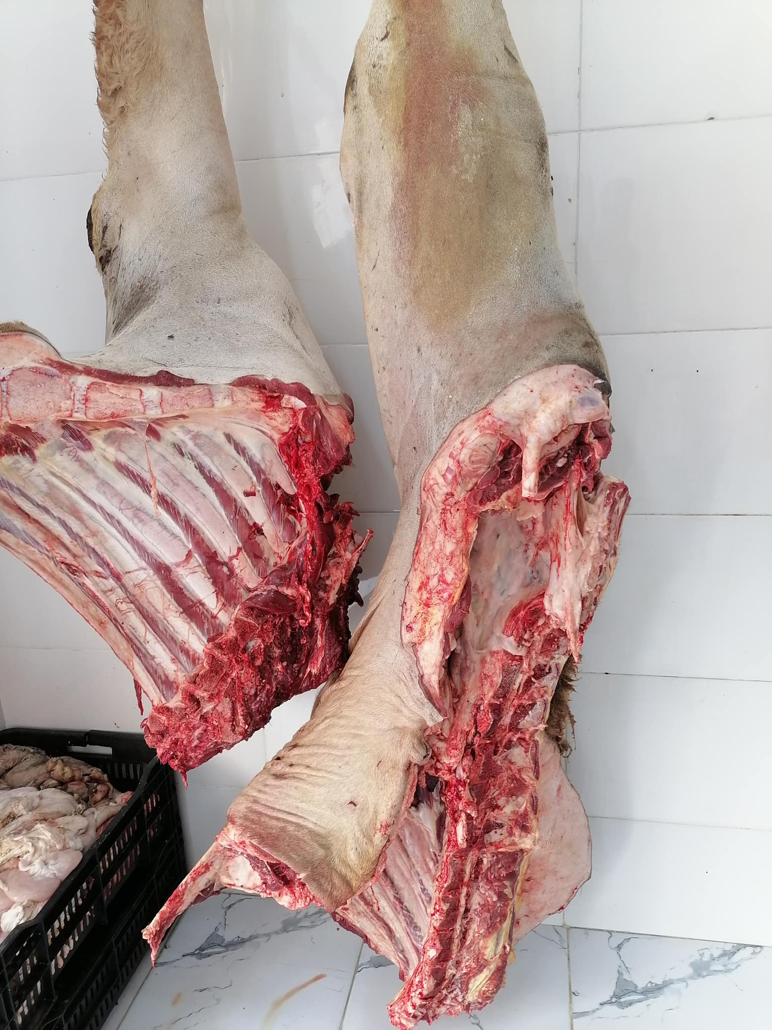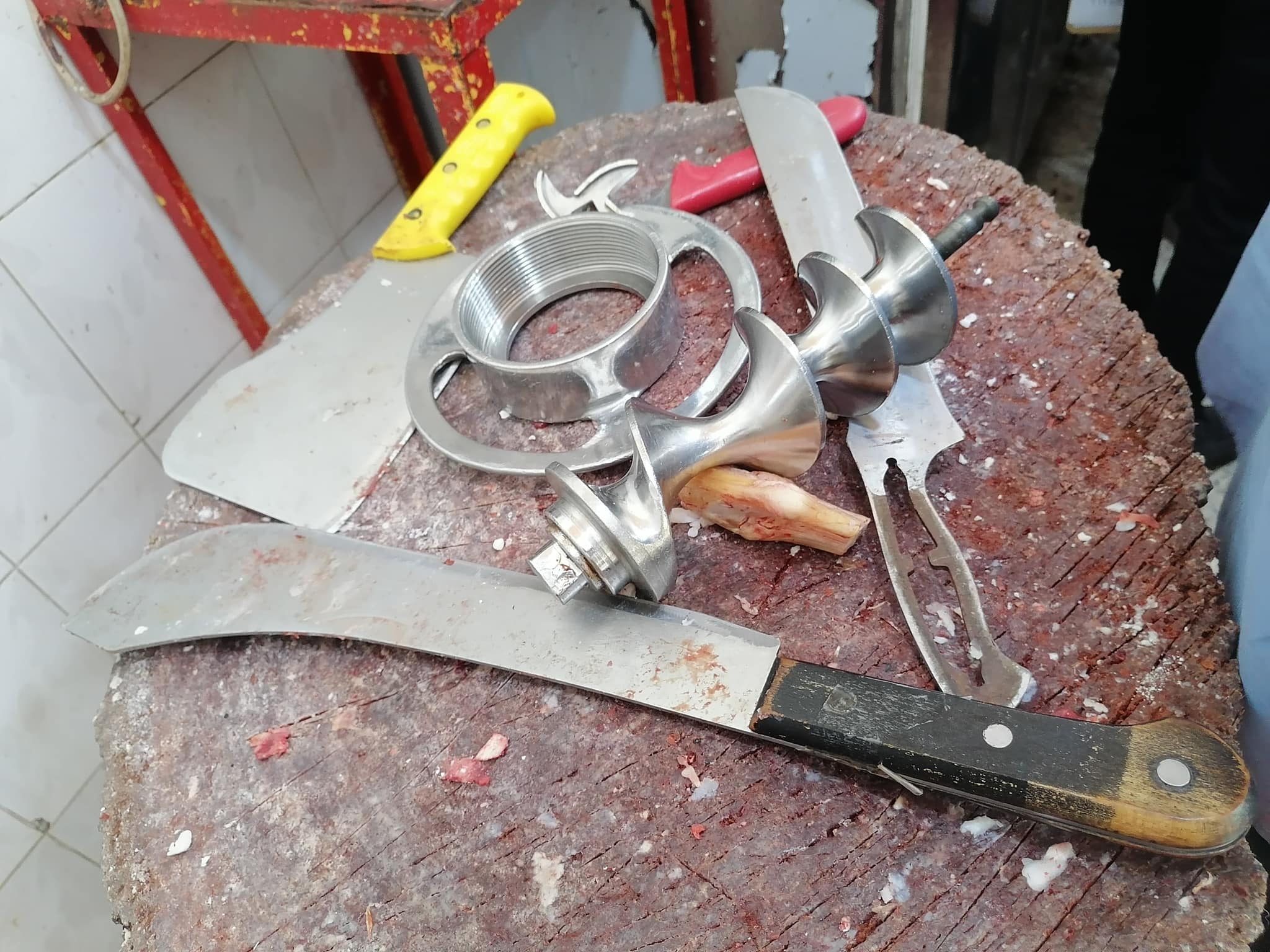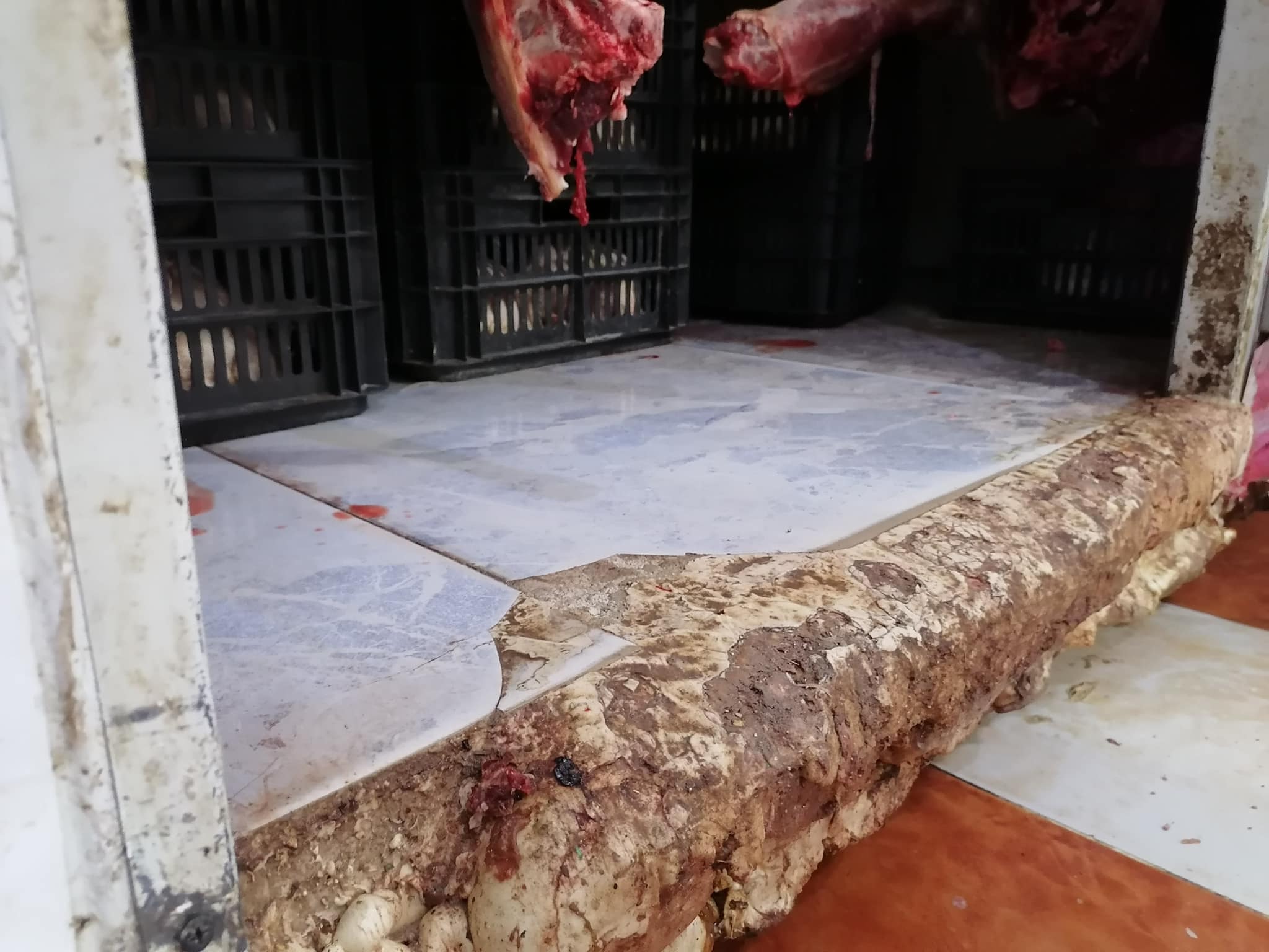 وأظهرت الصور آثار تعفن اللحوم وعدم نظافة أدوات الجزارة وأماكن التقطيع.