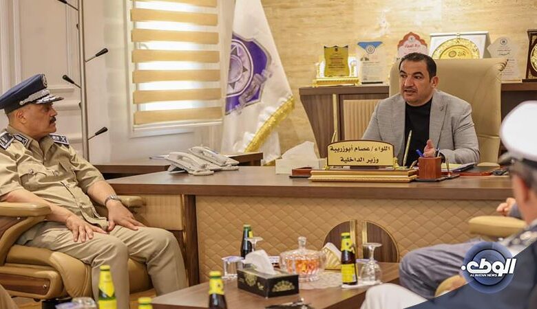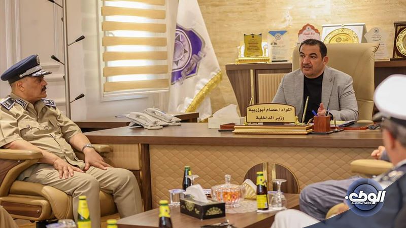 بحث وزير الداخلية بالحكومة الليبية، اللواء عصام أبو زريبة، مع مدير الإدارة العامة للمرور بالمنطقة الشرقية اللواء حسن الشلماني، ومدير الإدارة العَامة للآليات اللواء محمد الحداد، ومدير الإدارة العامة للتخطيط الأمني اللواء ونيس الشكري، وَمُدير مكتب ديوان الوزارة بنغازي العميد نايف الحاسي، وَنائب النقابة العامة للنقل البري خليل الذيب؛ تحديد المركبات الآلية المُختصة بنقل الركاب بداخل المدن.