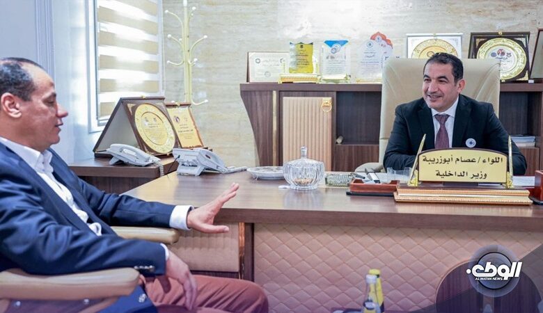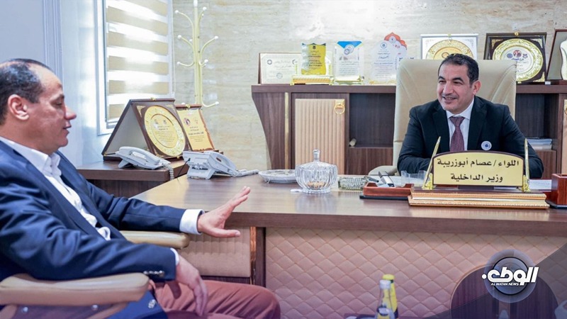 اجتمع وزير الداخلية في الحكومة الليبية، اللواء عصام أبوزريبة، بمكتبه بديوان الوزارة بمدينة بنغازي، مع معالي وزير الدفاع “احميدحومة“؛ وذلك في إطار التعاون الاستراتيجي بين وزارة الداخلية ووزارة الدفاع، وتعزيز الأمن والاستقرار في ليبيا.