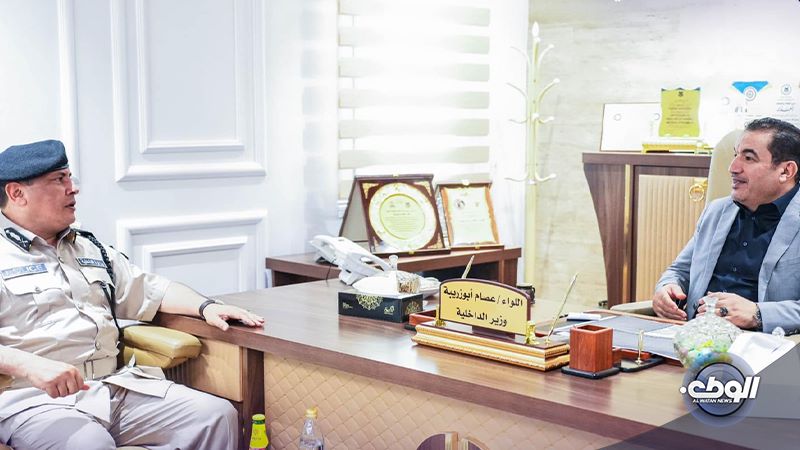 بحث وزير الداخلية بالحكومة الليبية، اللواء عصام أبو زريبة، مع مدير مديرية أمن البيضاء – الجبل الأخضر، اللواء خالد البسطة، الأوضاع الأمنية وسبل تعزيز الاستقرار في المدية ، وخطة المديرية لتأمين انتخابات المجالس البلدية ومراكز الاقتراع، وآلية التعاون بين المديرية والأجهزة الأمنية لتنفيذ عملية التأمين على أكمل وجه.