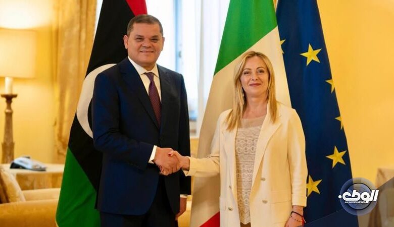 بحث رئيس الحكومة المنتهية عبد الحميد الدبيبة مع رئسية وزراء إيطاليا “جورجيا ميلوني“ سبل توطيد العلاقات بين البلدين بما يضمناستفادة ليبيا في مجالات الطاقة و البنية التحتية و الاتصالات، وتعزيز حالة الانتعاش الاقتصادي والخدمي.