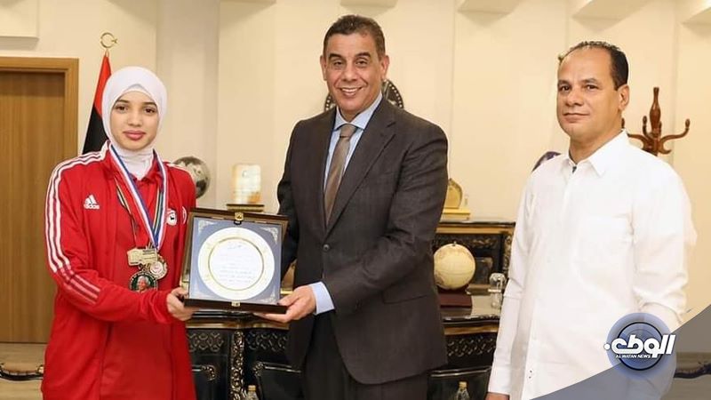 “القطراني” يكرم البطلة الليبية في لعبة الدفاع عن النفس “الكاراتيه”