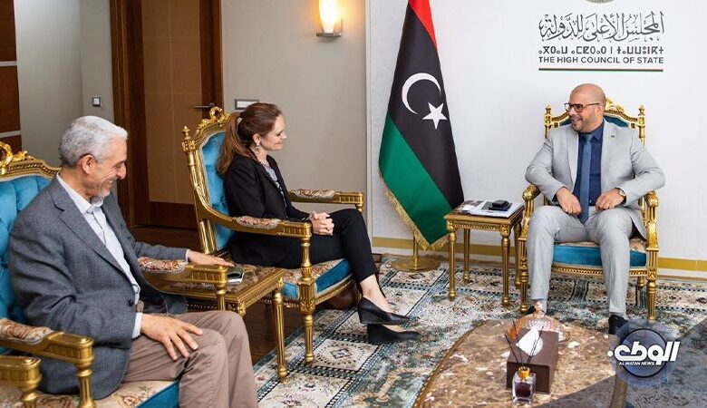 التقى النائب الثاني لرئيس مجلس الدولة عمر بوشاح، بمدير القسم السياسي بسفارة المملكة المتحدة لدى ليبيا إليزابيث ويلسون، ومستشار الشؤون السياسية بالسفارة فاروق الناجح، في مقر المجلس بالعاصمة طرابلس.