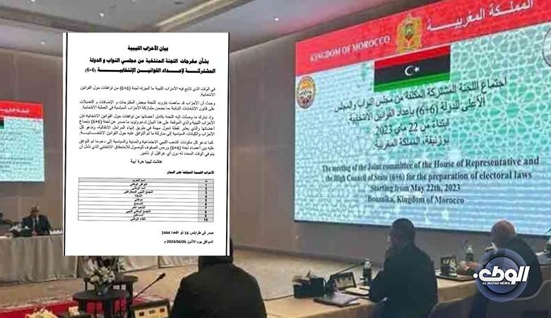 اصدرت مجموعة من الأحزاب الليبية بيانا قدمت خلاله مباركتها لما توصلت إليه لجنة 6+6 من توافقات حول القوانين الانتخابية مشيرة إلى دعم وتأييد ما صدر عن اللجنة.
