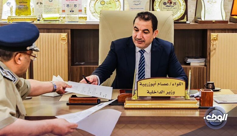 عقد وزير الداخلية في الحكومة الليبية، اللواء عصام ابوزريبة، اجتماعا مع مدير الإدارة العامة للتخطيط الأمني بالوزارة اللواء ونيس الشكري بديوان الوزارة في بنغازي.