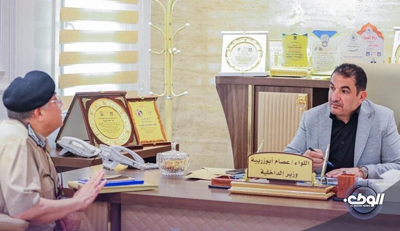 بحث وزير الداخلية اللواء عصام أبوزريبة،  مع مدير مديرية أمن الأبيار اللواء إدريس السعيطي عددا من  الموضوعات الأمنية المُلحة، بما فيذلك التحديات الأمنية التي تواجهها المنطقة، وسُبل تعزيز الأمن والاستقرار بالمنطقة.
