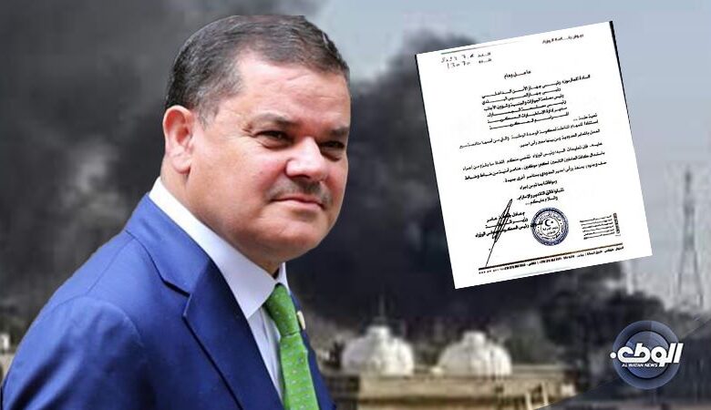 وجه رئيس الحكومة المنتهية “عبدالحميد الدبيبة” كتاباً عاجلاً يقضي باتخاذ كل ما يلزم من إجراءات لاستبدال كل العاملين من موظفين مدنيين وعسكريين وأمنيين بمنفذ رأس اجدير الحدودي بعناصر أخرى جديدة.