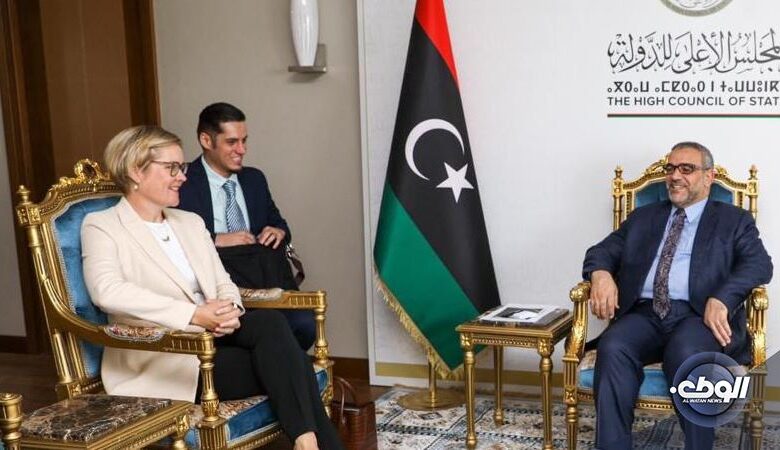 استقبل رئيس مجلس الدولة “خالد المشري” اليوم الأحد، سفيرة المملكة المتحدة لدى ليبيا ” كارولين هورندال” في مقر المجلس بالعاصمة طرابلس.