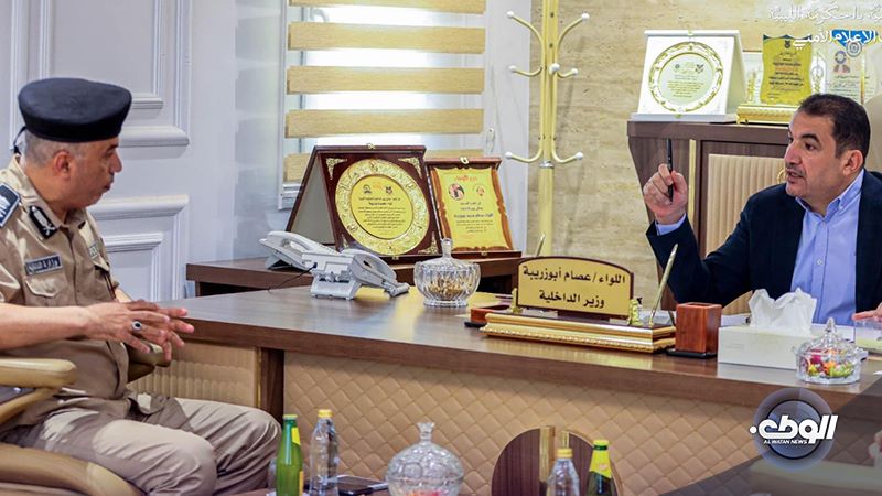 اجتمع وزير الداخلية اللواء عصام أبوزريبة بمدير مديرية أمن الواحات جالو اللواء خالد العبار، ومدير مدرية أمن أوجلة اجخرة اللواء السنوسي عنودة.