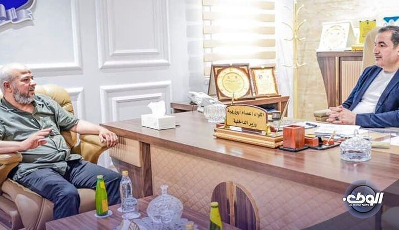 استقبل وزير الدَّاخلية في الحكومة اللييية اللواء عصام أبوزريبة عضُو مجلس النواب ورئيس لجنة الشؤون الدَّاخلية بالمجلس سليمـان الحراري، لمُناقشة عددًا من الملفات والمسائل الأمنية، أبرزها خُطة عمل وزارة الداخلية وتحركاتها لتعزيز الأمن وحفظ أمن واستقرار المُواطنين، والحد من الجريمة ومكافحة الظواهر السلبية.