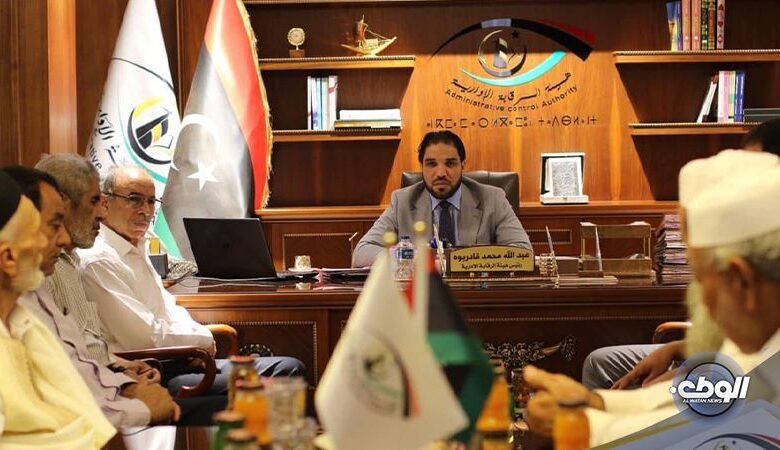 التقى رئيس هيئة الرقابة الإدارية عبد الله قادربوه، اليوم الثلاثاء بمكتبه، بأعيان المنطقتين الغربية والوسطى وجبل نفوسة، الذين جاؤو التهنئته وإبلاغه بتضامنهم المطلق مع الهيئة في محاربتها للفساد الإداري والمالي المستشري في البلاد.