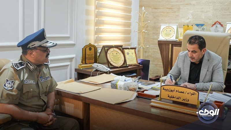 عقد وزير الداخلية في الحكومة الليبية اللواء “عصام أبوزريبة” ظهر اليوم الثُـلاثاء، في مكتبه بِبنغازي، اجتماعًا مع مدير إدارة التخطيط الأمني بالوزارة اللواء “ونيس الشكري” لمناقشة آلية تطوير الأداء الأمني ورفع الكفاءة الأمنية لدى الجهات التابعة للوزارة.
