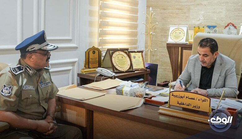 عقد وزير الداخلية في الحكومة الليبية اللواء “عصام أبوزريبة” ظهر اليوم الثُـلاثاء، في مكتبه بِبنغازي، اجتماعًا مع مدير إدارة التخطيط الأمني بالوزارة اللواء “ونيس الشكري” لمناقشة آلية تطوير الأداء الأمني ورفع الكفاءة الأمنية لدى الجهات التابعة للوزارة.
