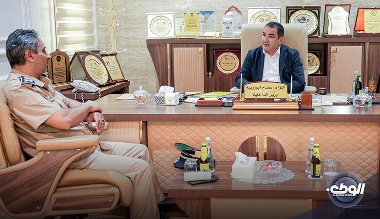اجتمع وزير الداخلية الليبية اللواء “عصام أبوزريبة” صباح اليوم الأحد ، بديوان الوزارة بمدينة بنغازي، مع مدير مديرية أمن توكرة اللواء “فوزي المهدي”.