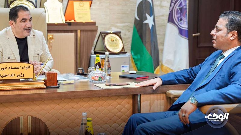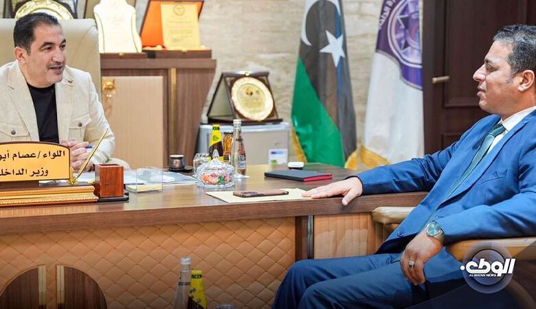 بحث وزير الدَّاخلية بالحكومة الليبية اللواء “عصام أبوزريبة” اليوم بمقر الوزارة ببنغازي القضايا الأمنية بمنطقة النواحي الأربعة مع عضومجلس النواب عن ورئيس لجنة الإدارة وَالحكم المحلي بالمجلس“علي المجدوب”