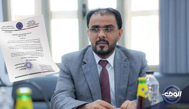 وجه وزير الطيران المدني بالحكومة الليبية م. هشام أبوشكيوات، كتاباً لمدير مصلحة الطيران المدني ومدراء المطارات بعدم الاعتداد بأية قرارات أو منشورات تصدر عن الحكومة منتهية الولاية.