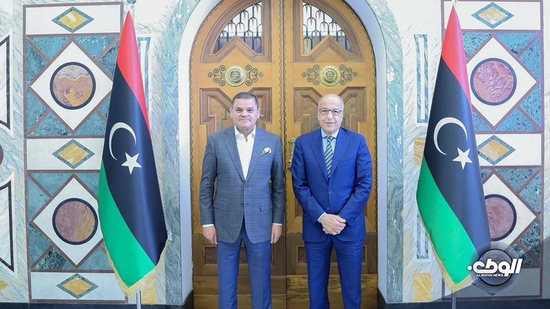 بحث رئيس الحكومة المنتهية عبدالحميد الدبيبة مع محافظ مصرف ليبيا المركزي الصديق الكبير، جهود تحقيق الاستقرار المالي، عقب إعلانتوحيد المصرف المركزي.