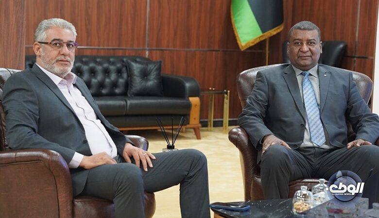 استقبل وزير الحكم المحلي في الحكومة الليبية سامي الضاوي بمكتبه وزيـر الشؤون الإجتماعية المبروك غيث.