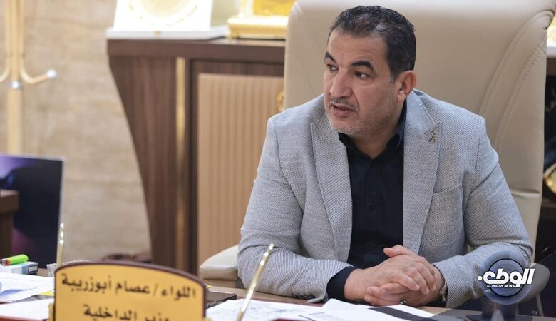 استقبل وزير الداخلية اللواء في الحكومة الليبية، “عصام أبوزريبة”، بمكتبه في بنغازي، وكيل وزارة الداخلية “فرج اقعيم” لمناقشة آخر مستجدات الأوضاع الأمنية بالمنطقة الجنوبية والشرقيّة، وتقييم الخطط الحالية لتعزيز الاستقرار والتخلص مِن التحديّات الأمنية.
