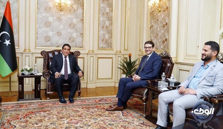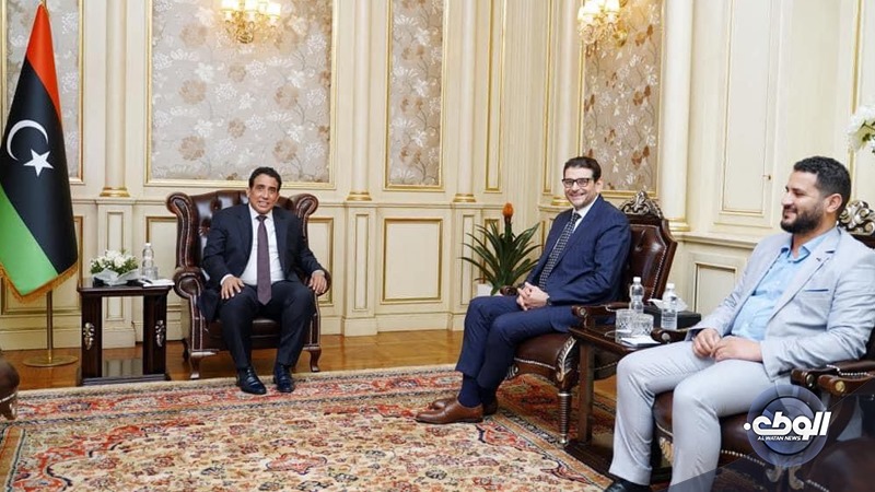 التقى رئيس المجلس الرئاسي محمد المنفي، برئيس حزب العدالة والبناء عماد البناني.