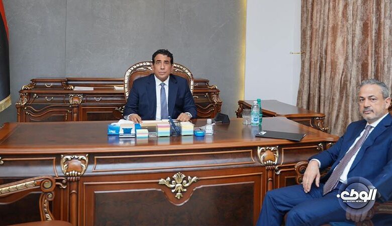 التقى رئيس المجلس الرئاسي، محمد المنفي صباح اليوم الثلاثاء بطرابلس، نائب رئيس اللجنة العليا للترتيبات المالية، فرحات بن قدارة.