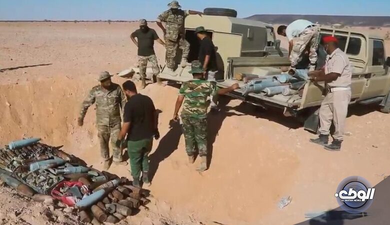 باشر فصيل الهندسة العسكرية التابع للواء 128المعزز مهامه المكلف بها بجمع مخلفات الحرب والألغام المنتشرة في أماكن متفرقة منمنطقة الجفرة العسكرية الواقعة في الجنوب الليبي، وذلك تنفيذاً لتوجيهات القائد العام للقوات المسلحة المشير خليفة حفتر، والتي نصت علىتأمين الوطن والحفاظ على سلامة وأمن المواطن.