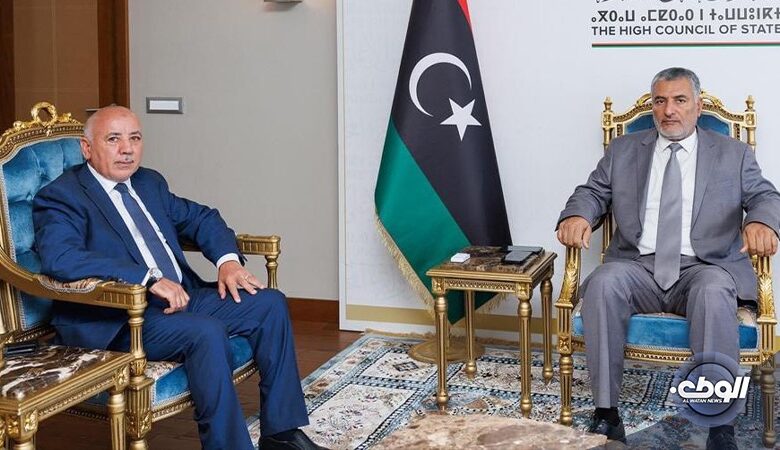 استقبل رئيس مجلس الدولة محمد تكالة، رئيس حزب التغيير جمعة القماطي في مقر المجلس بطرابلس.