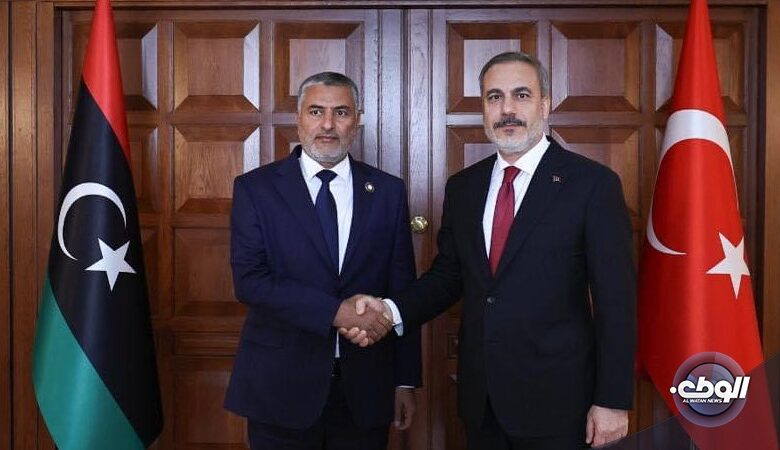 بحث رئيس مجلس الدولة محمد تكالة، اليوم الأربعاء، مع وزير الخارجية التركي هاكان فيدان، في مقر الخارجية التركية بأنقرة، الشأن السياسي إقليميا ومحليًّا، وآخر المستجدات السياسية في ليبيا، وملف الانتخابات الليبية.