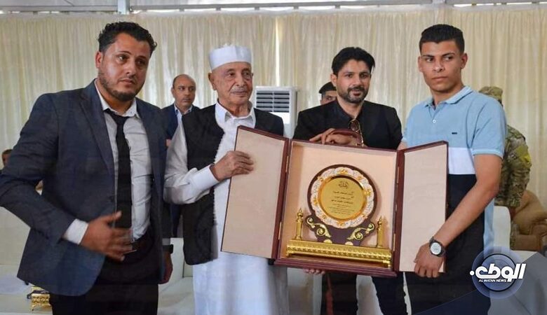 وفي ختام اللقاء قدم الوفد درعاً للسيد رئيس مجلس النواب المستشار “عقيلة صالح ” تقديراً لجهوده ومواقفه الوطنية .