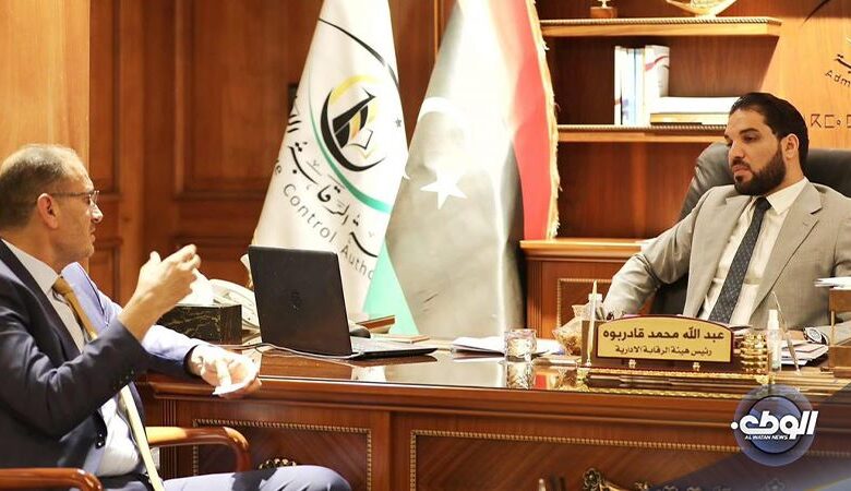 التقى رئيس هيئة الرقابة الإدارية عبدالله قادربوه بمدير عام المحفظة الاستثمارية طويلة المدى عبد الغني الفطيسي، حيث تباحث اللقاء الوضع العام للمحفظة؛ كونها إحدى دعائم الاقتصاد الليبي.