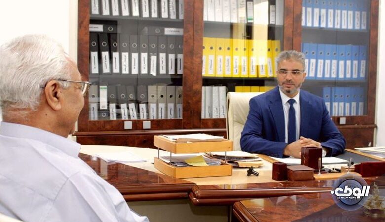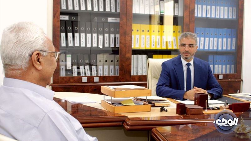 بحث وكيل وزارة الاقتصاد والتجارة للمناطق الحرة في الحكومة المنتهية نوري قطاطي، مع عميد بلدية مسلاته فرج عاشور، اليوم الأربعاء، بمقر ديوان الوزارة في إطار متابعة الأوضاع الاقتصادية بالبلدية.