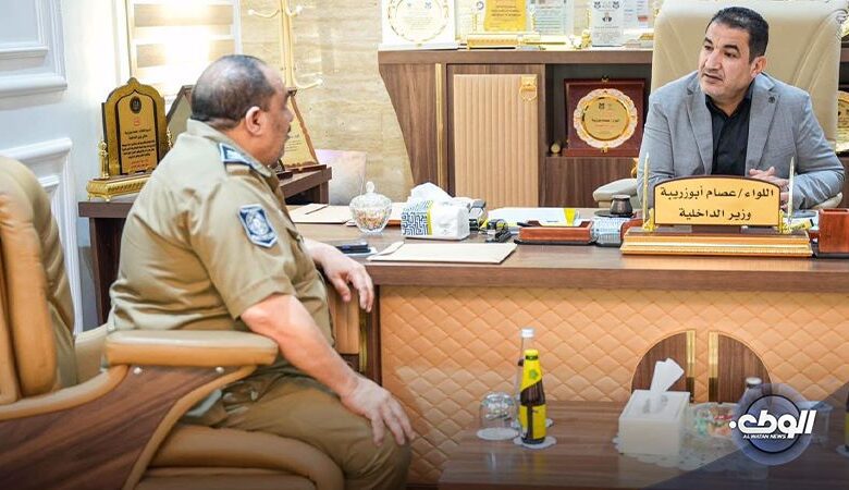 التقى وزير الداخلية اللواء عصام أبوزريبة في مكتبه بمدينة بنغازي مع مدير المعهد العالي للضباط بالمنطقة الشرقيّة اللواء طارق الزائدي، لمتابعة تجهيزات وآخر تطورات صيانة المعهد استعدادًا للدورة التدريبية المقبلة، والتأكيد على أهمية الاستعداد الجيد لاِستقبال الطلاب وتوفير بيئة تعليمية مُناسبة.