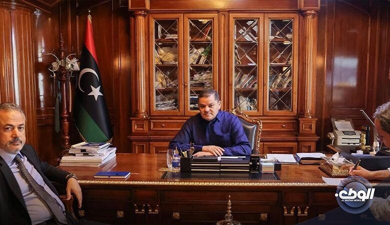 بحث رئيس الوزراء الحكومة المنتهية عبدالحميد الدبيبة مع رئيس مجلس إدارة المؤسسة الوطنية للنفط فرحات بن قدارة، جهود المؤسسة فيتخفيف الظروف المعيشية في بلديات المنطقة الشرقية.