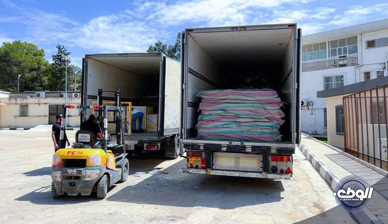 “الصحة الليبية” ترسل شحنة مواد ومعدات طبية لمركز البيضاء الطبي