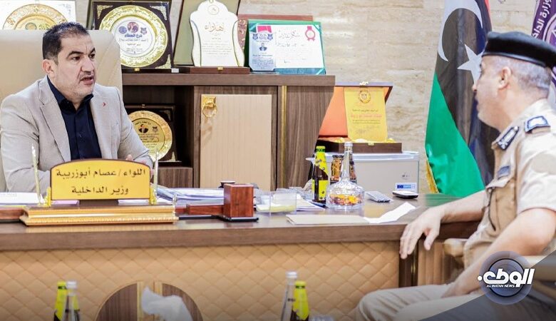 عقد وزير الداخلية في الحكومة الليبية، اللواء “عصام أبوزريبة”، اجتماعًا في مكتبه بديوان الوزارة في بنغازي، مع مدير إدارة الشؤون الفنية للاِتصالات بوزارة الداخلية، اللواء “علي حسن الأوجلي” لمناقشة عددً من القضايا ذات الصلة بتطوير البنية التحتية التقنية في مختلف ربوع البـلاد.