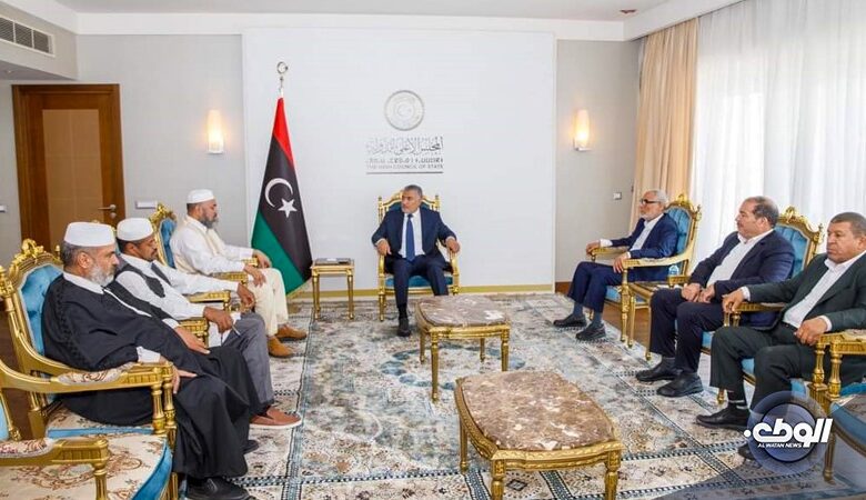 اجتمع رئيس مجلس الدولة “محمد تكالة” رفقة عدد من الاعضاء بوفد من مجلس أعيان ليبيا للمصالحة في لقاء تناول العديد من القضايا المهمة للوقوف على الدور الحيوي الذي يؤديه مجلس الأعيان في تعزيز الحوار والتفاهم بين جميع الأطراف المعنية، مع التأكيد على ضرورة العمل المشترك بين كل مؤسسات الدولة والجهات ذات العلاقة للتوصل إلى حلول سلمية للخلافات والتحديات التي تواجه البلاد.