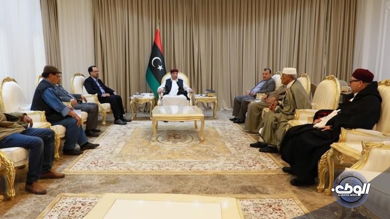 المستشار “صالح” يبحث مع رئيس مجلس المشائخ والأعيان بدرنة القضايا المتعلقة بعائلات ضحايا الفيضانات