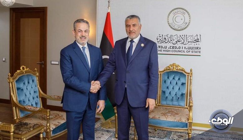 استقبل رئيس مجلس الدولة محمد تكالة، رئيس المؤسسة الوطنية للنفط فرحات بن قدارة، في مقر المجلس بطرابلس.