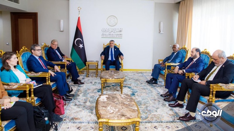 استقبل رئيس مجلس الدولة محمد تكالة، وفدًا أمريكياً رفيع المستوى متمثلا في المبعوث الخاص ريتشارد نورلاند ونائب رئيس البعثة جيرمي بيرندت ورئيس القسم السياسي ليندسي كوفي والمسؤولة السياسية كلير أشكرافيت في مقر المجلس بالعاصمة طرابلس.