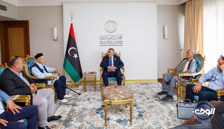 التقى رئيس مجلس الدولة محمد تكالة، عدداً من أهالي زاوية المحجوب بمصراتة، لمناقشة الأوضاع الأمنية والسياسية وما لها من تاثير علىالحياة الاقتصادية والاجتماعية.