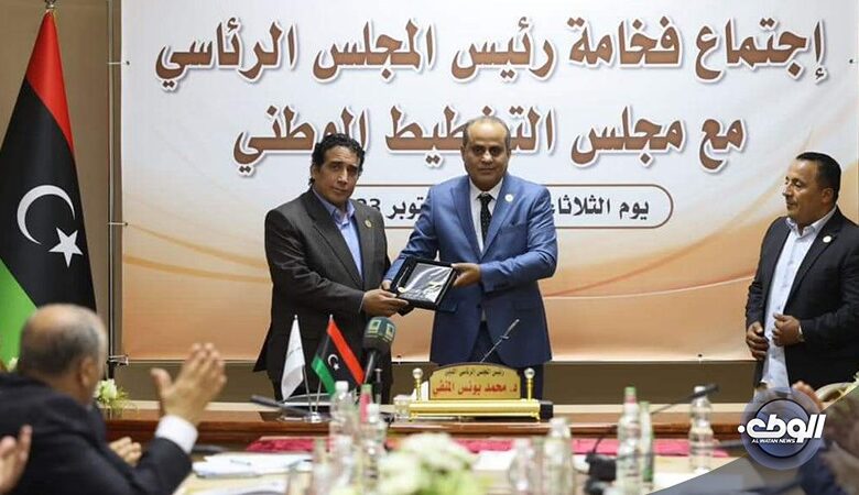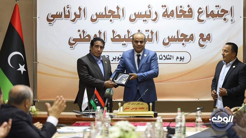 وفي الختام، قدم مجلس التخطيط الوطني درعًا تقديريًا لفخامة الرئيس تقديرًا لمواقفه الوطنية الثابتة والراسخة تجاه القضية الليبية.