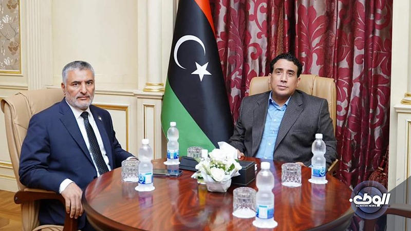 التقى رئيس المجلس الرئاسي محمد المنفي رئيس مجلس الدولة محمد تكالة في طرابلس اليوم لبحث تطورات الأوضاع السياسية على الساحة المحلية والإقليمية.