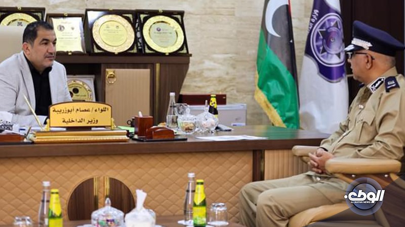 بحث وزير الداخلية في الحكومة الليبية عصام أبوزريبة، اليوم الإثنين، في مقر وزارة الداخلية، مع مدير الإدارة العامة للتدريب خميس الوزان، استعدادات المعهد العالي للضباط للبدء بالدورة التدريبية القادمة.