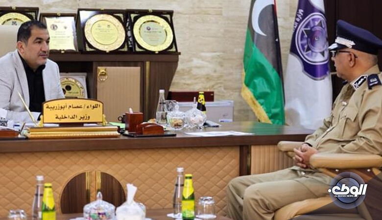 بحث وزير الداخلية في الحكومة الليبية عصام أبوزريبة، اليوم الإثنين، في مقر وزارة الداخلية، مع مدير الإدارة العامة للتدريب خميس الوزان، استعدادات المعهد العالي للضباط للبدء بالدورة التدريبية القادمة.