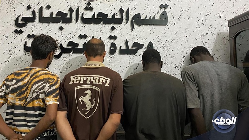 ضبطت وحدة التحريات بقسم البحث الجنائي التابعة لمديرية أمن أجدابيا مجموعة من العمالة الوافدة من الجنسية السورية والسودانية خلال شراء مخدر الحشيش من أحد المروجين الليبيين، والذي تم ضبطه ضمن كمين.