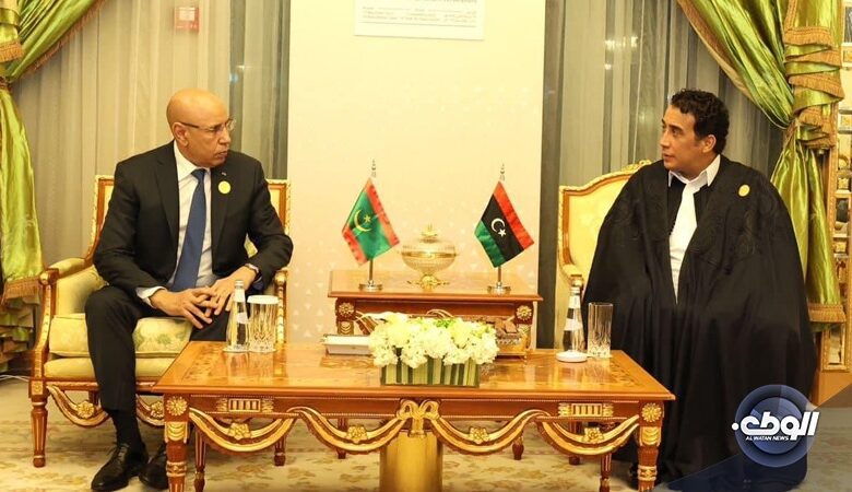 التقى رئيس المجلس الرئاسي محمد المنفي، برئيس الجمهورية الإسلامية الموريتانية محمد ولد الغزواني، وذلك على هامش أعمال القمةالعربية الإسلامية الاستثنائية.