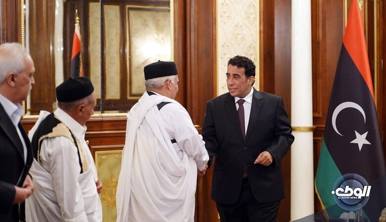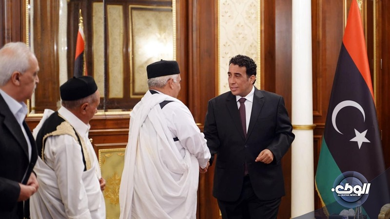 التقى رئيس المجلس الرئاسي محمد المنفي، وفداً من مشائخ وأعيان ليبيا، لبحث تطورات الأوضاع السياسية وجهود المجلس الرئاسي في الوصول لتسوية سياسية شاملة، والخطوات المنجزة في مشروع المصالحة الوطنية لتحقيق الاستقرار في كافة أنحاء البلاد.