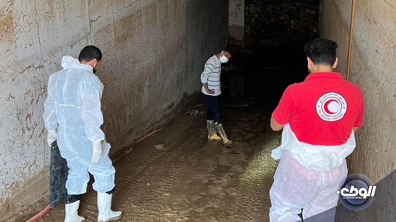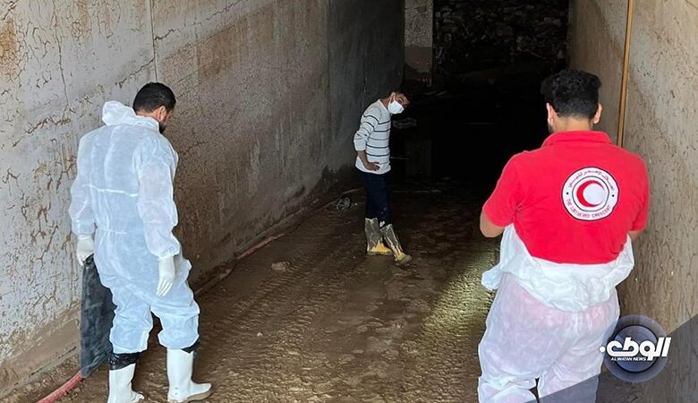 الهلال الأحمر ينتشل 4 جثث متحللة من داخل المصرف التجاري الوطني بدرنة