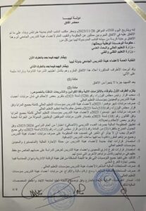 ونص الاتفاق المبرم بين النقابة، ووزارتي التعليم العالي والبحث العلمي، والتعليم التقني والفني بالحكومة المنتهية، على أن تلتزم كل مؤسسات التعليم بتعديل الخطة الدراسية وتعويض فترة الاعتصام بما يضمن نجاح العام الجامعي.