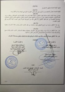 ونص الاتفاق على أن تسحب الحكومة المنتهية قرار رئيس مجلس وزرائها رقم (520) لسنة 2023م بتقرير بعض الاحكام في شأن مرتبات أعضاء هيئة التدريس والمعيدين بمؤسسات التعليم العالي، وصرف مرتبات شهر نوفمبر / 2023م لأعضاء هيئة التدريس بمؤسسات التعليم العالي كاملة بجميع المزايا وفق قرار مجلس الوزراء رقم (533) لسنة 2023م بتعديل حكم بلائحة تنظيم التعليم العالي.